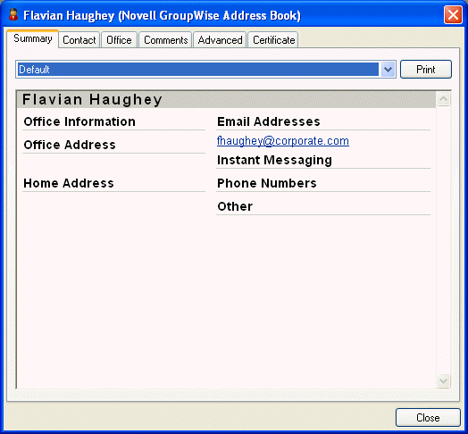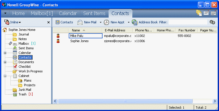 O Gerenciamento de Contatos do GroupWise permite acesso a contatos, grupos, recursos e organizações da pasta Contatos