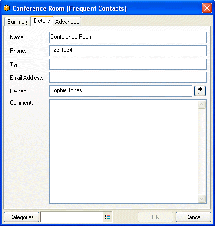 Utilize essa guia para digitar um nome para o recurso, um telefone, um tipo de recurso, um endereço de e-mail e comentários sobre esse recurso. No campo Proprietário, você pode digitar um contato que já esteja em seu bloco de endereços ou pode usar o botão de seta para criar uma nova entrada de contato. |