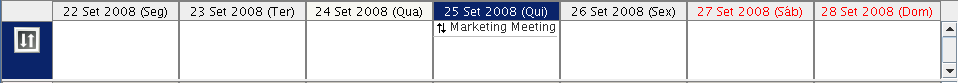 Os ícones que aparecem no calendário fornecem informações adicionais sobre os itens. Para obter mais informações, consulte Identificando os ícones que aparecem próximos aos itens.