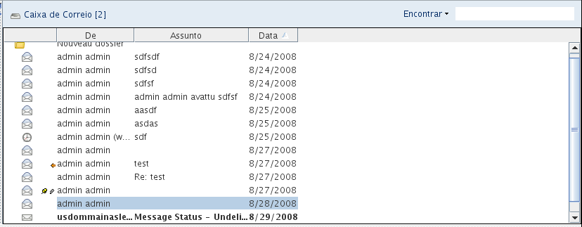 A maneira mais comum de exibir informações é uma lista de itens. Por exemplo, a lista de itens Caixa de Correio é a lista de mensagens que você recebeu. O cabeçalho da lista de itens mostra o nome da pasta cujo conteúdo é apresentado. Também fornece o campo para localização rápida de itens na pasta.
