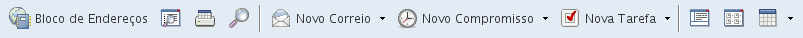 A barra de ferramentas principal oferece acesso por meio de clique único aos recursos mais comuns do GroupWise, como enviar uma mensagem ou compromisso, executar uma pesquisa etc.