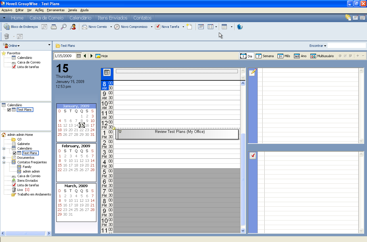 Nos modos Remoto e de Cache, as mudanças no calendário compartilhado são atualizadas sempre que você se conecta ao sistema GroupWise master.