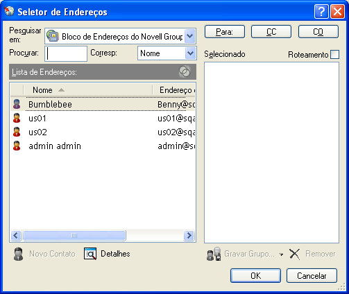 Para selecionar nomes de usuário em uma lista, clique em na barra de ferramentas, procure e clique duas vezes em cada usuário e clique em .