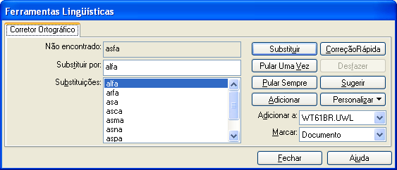 Para habilitar novamente o Corretor Ortográfico Rápido, clique o botão direito do mouse na caixa ou e clique em .