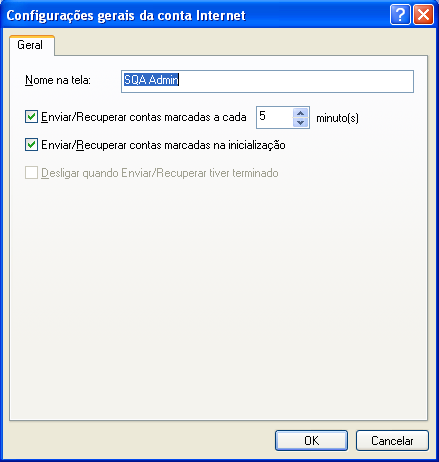 As configurações afetam todas as contas nas quais a opção esteja selecionada nas propriedades da conta.