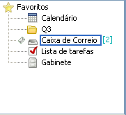 Favoritos: Exibida sempre que você não está usando a pasta Calendário, Contatos, Documentos ou qualquer pasta NNTP. A Lista de Pastas Simples Favoritos permite copiar pastas para a lista de pastas para tornar o acesso mais rápido.