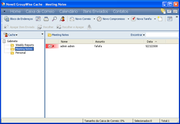 Nos modos Remoto e de Cache, as mudanças em pastas compartilhadas são atualizadas sempre que você se conecta com o sistema GroupWise master.