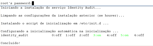 Execute o script root_install_service.sh para permitir que o Identity Audit seja iniciado como um serviço. Esta etapa exige acesso no nível root. Por exemplo: