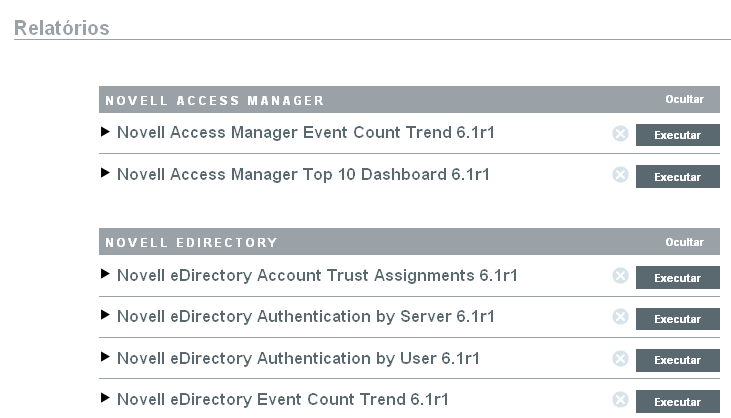No Identity Audit, clique em para exibir os relatórios disponíveis.