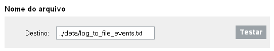 Em , digite o caminho para o arquivo em que você deseja gravar os eventos. Se desejado, clique em para testar a conexão.