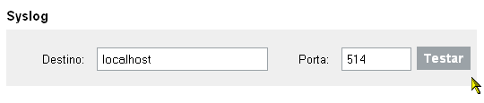 Em , digite um nome ou um endereço IP e abra a porta de um servidor syslog. Se desejado, clique em para testar se o servidor de destino e a porta existem.