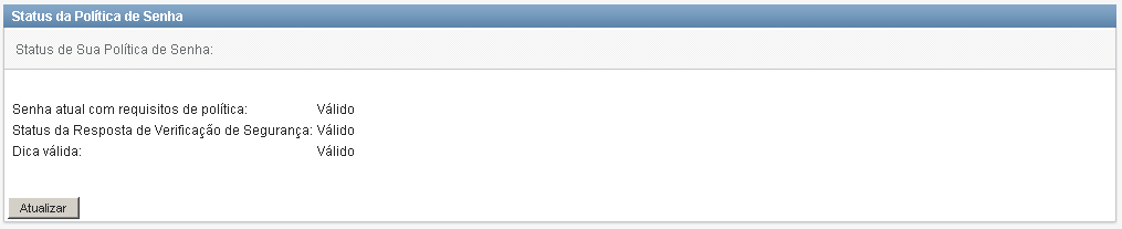 Uma política de senha é designada para você pelo administrador. A política determina as medidas de segurança associadas à sua senha. Você pode verificar os requisitos de sua política de senha da seguinte maneira: