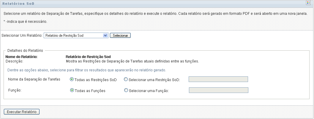 Para criar e ver o Relatório de Restrição SoD:
