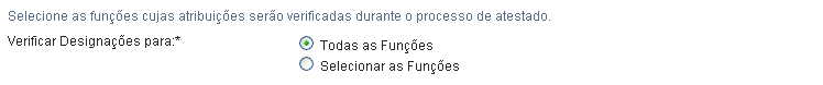 Você deve selecionar pelo menos uma função para iniciar um processo de atestado. Entretanto, não precisa selecionar uma função para gravar uma solicitação.
