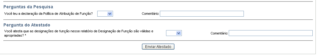Para todos os tipos de atestado, o formulário mostra controles que permitem responder à pergunta do atestado exigida, bem como a qualquer pergunta de pesquisa adicional incluída no processo: