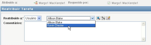 Na lista suspensa , selecione o usuário a quem você deseja reatribuir a tarefa.