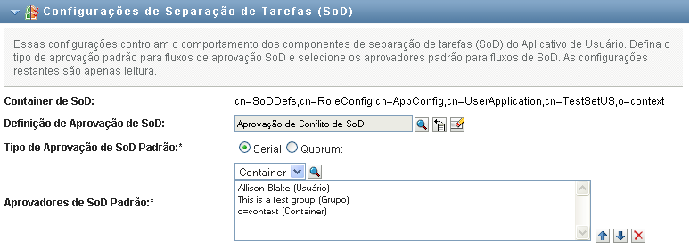 A configuração Container de SoD é apenas leitura e estabelecida na hora da instalação.