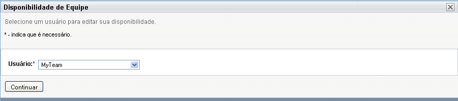 A ação Disponibilidade de Equipe permite especificar as solicitações de processo com as quais os membros da sua equipe não têm disponibilidade para trabalhar. Durante o período de indisponibilidade dos membros da sua equipe, todas as solicitações de processo desse tipo serão encaminhadas à fila do usuário indicado.