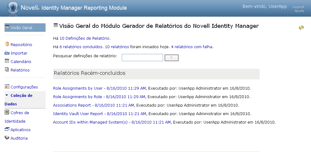 Para acessar o Módulo Gerador de Relatórios de Identidade a partir do Aplicativo de Usuário: