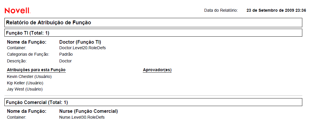 Figura 19-2 Exemplo de Relatório de Atribuição de Função