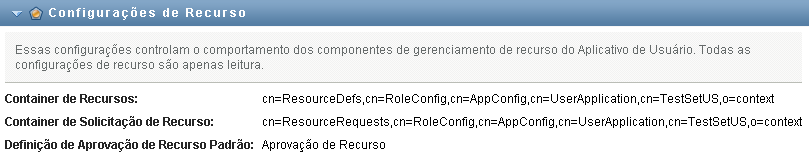 Essas configurações controlam o comportamento dos componentes de gerenciamento de recurso do Aplicativo de Usuário. Todas as configurações de recurso são apenas leitura.