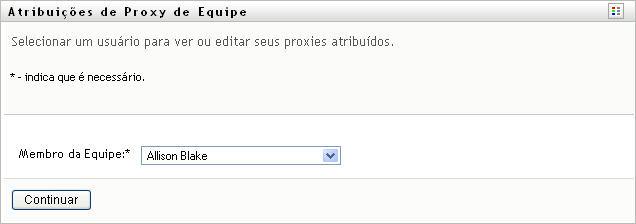 As atribuições de proxy do membro da equipe selecionado, se houver, serão exibidas.