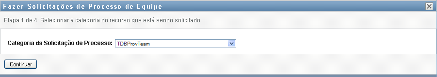 A página Fazer Solicitações de Processo de Equipe é exibida.