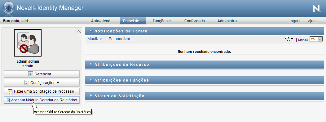 Para acessar o Módulo Gerador de Relatórios de Identidade a partir do Aplicativo de Usuário: