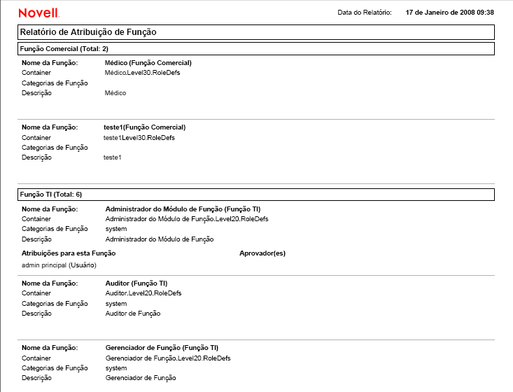 Figura 18-2 Exemplo de Relatório de Atribuição de Função
