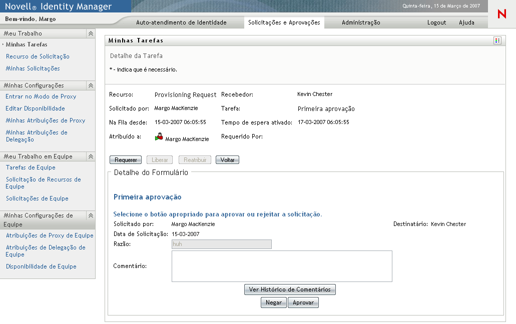 O designer de workflow pode desabilitar a geração de comentários de usuários para um workflow. Para obter mais informações, consulte o Identity Manager User Application: Design Guide.