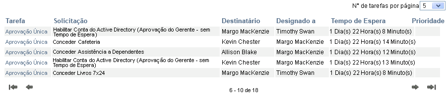 Selecione um tamanho de página de 5, 10 ou 25 tarefas por página.