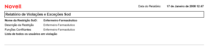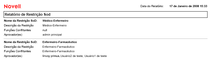Figura 18-3 Exemplo de Relatório de Restrição SoD