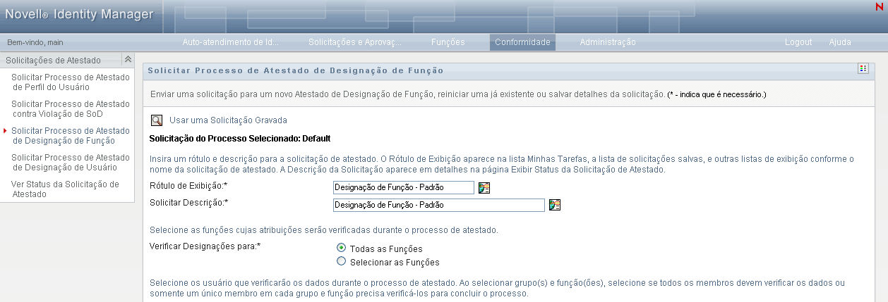 As ações de somente serão exibidas se você for um Administrador do Módulo de Conformidade ou um Gerente de Atestado.