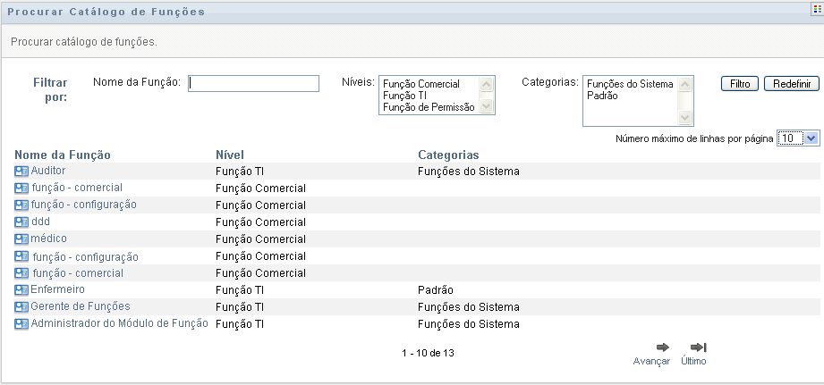 Para ver as funções que possuem um nível específico na hierarquia, selecione o nível desejado na caixa .