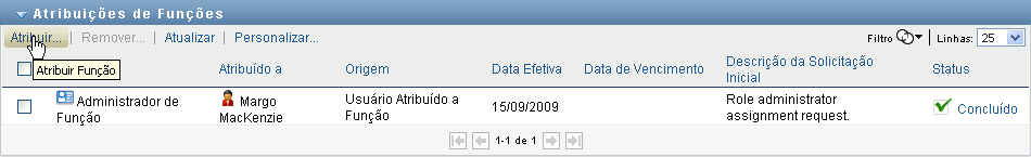 Para rolar para outra página na lista de atribuições de funções, clique no botão , , ou na parte inferior da lista.