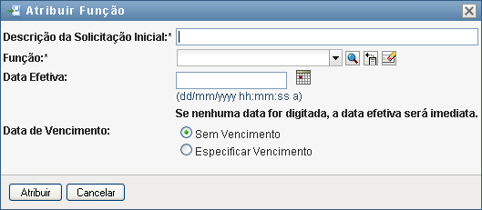 Especifique uma string de filtro para a descrição da solicitação inicial ou para o nome da função, ou restrinja a pesquisa selecionando o tipo de atribuição (, , ou ) e o conjunto de identidades que sejam do tipo da atribuição selecionado. Se preferir, é possível restringir a pesquisa selecionando um tipo de origem para a atribuição de função (, , ou ).