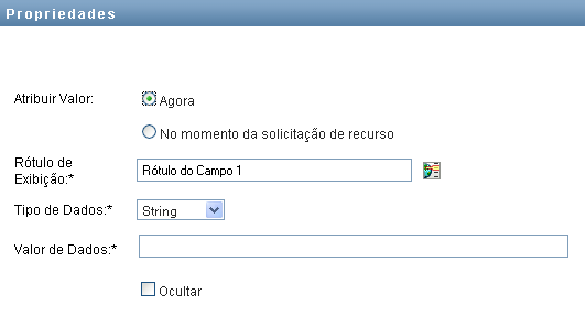 Para ocultar o valor no formulário de solicitação, clique em . Um campo oculto no formulário de solicitação ainda fica visível no formulário de aprovação.