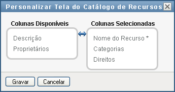 O permite selecionar e anular a seleção de colunas e também reorganizar as colunas na tela de lista de tarefas. A seleção e organização das colunas são controladas pelas configurações da caixa de diálogo . Quando você modifica a lista de colunas ou reorganiza as colunas, suas personalizações são gravadas no Identity Vault com as outras preferências de usuário.