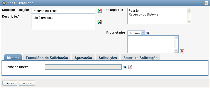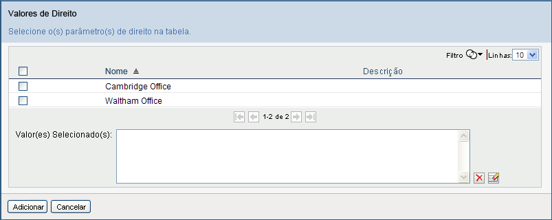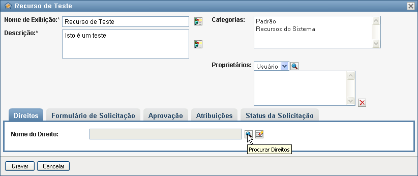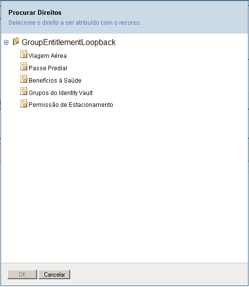 NOTA:Se você não configurou o Recurso DirXML corretamente, quando acessar a página para selecionar um Direito, verá uma mensagem indicando que você não configurou seus direitos para o mapeamento de recursos.