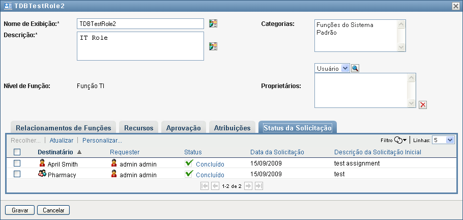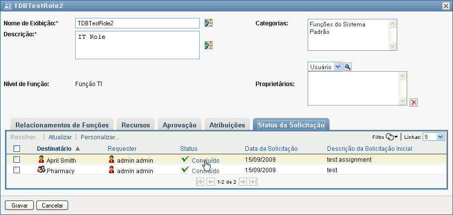 Para obter detalhes sobre como trabalhar com o formulário de solicitação de atribuição de função, consulte Atribuindo uma função do catálogo.
