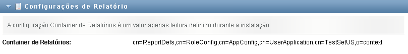O valor Container de Relatórios é uma configuração apenas leitura estabelecida na hora da instalação.