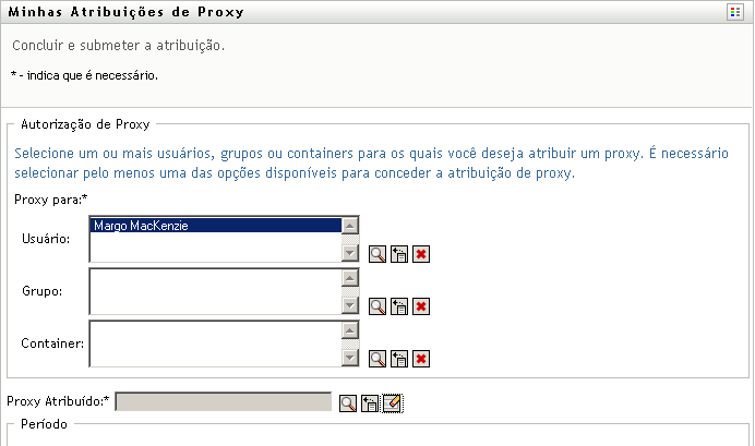 Se você for o Administrador de Aprovisionamento, selecione um ou mais usuários, grupos e containers para os quais deseja definir um proxy.