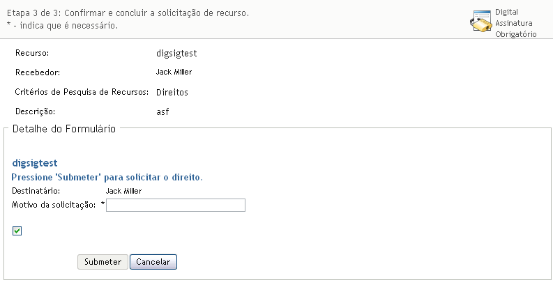 Se você estiver fazendo uma solicitação que exija uma assinatura digital, execute estas etapas: