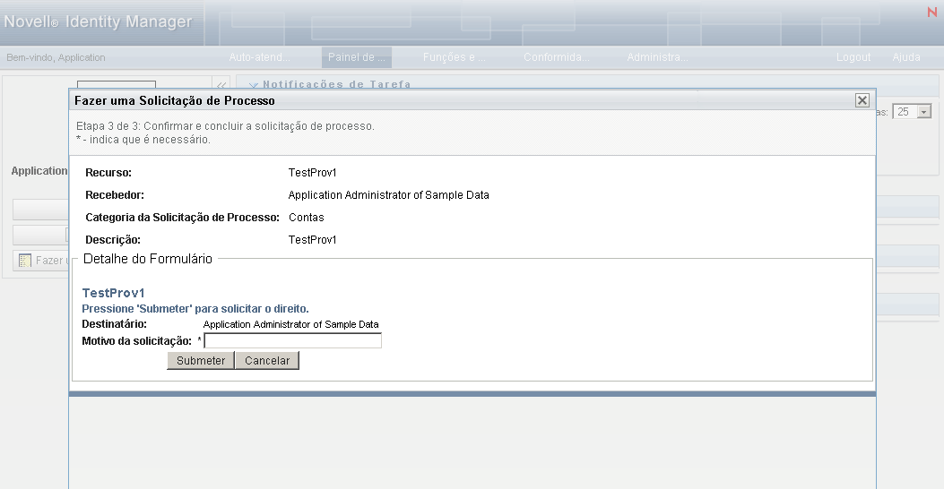Depois que é feita uma solicitação, ela aparece na lista de solicitações que o requester vê no Painel de Trabalho em . Além disso, o aprovador vê a tarefa no Painel de Trabalho em .
