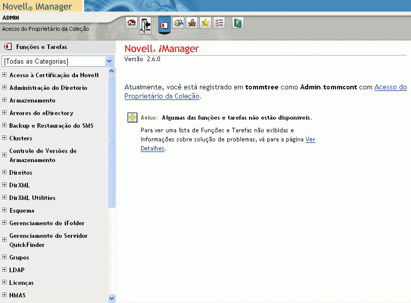 Use apenas os botões na interface quando você estiver navegando no iManager. Os botões da barra de ferramentas do browser da Web (Voltar, Avançar etc.) não são suportados.