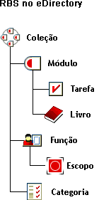 Representa um objeto Container que mantém objetos rbsTask e rbsBook. Os objetos rbsModule possuem um atributo de nome de módulo o qual representa o nome do produto que define as tarefas ou os livros (por exemplo, Utilitários de manutenção do eDirectory, GerenciamentoTM NMAS ou Acesso aoTM Novell Certificate Server). Os objetos rbsModule apenas podem ser criados em containers rbsCollection. |