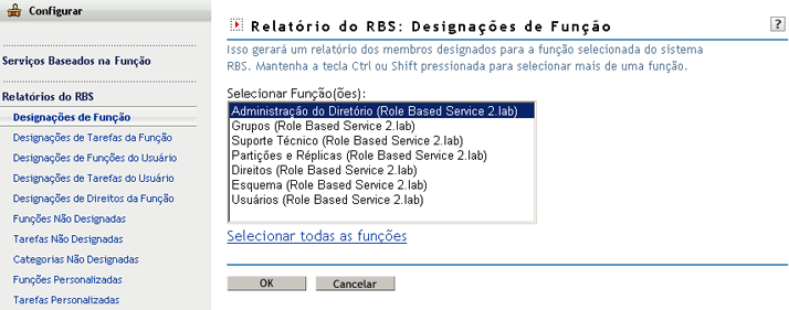 Cada relatório requer algumas informações iniciais, como as funções para as quais será gerada uma lista de membros designados.