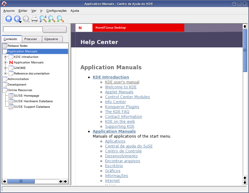 O NLD inclui um Centro de Ajuda, que contém os guias do usuário do NLD, todas as fontes de informação disponíveis para a sua estação de trabalho e a Ajuda online para os programas instalados.O Centro de Ajuda também oferece acesso a páginas de manuais (man) e informações (info) associadas a programas de linha de comando, bem como o acesso à Ajuda de programas gráficos.Para acessar as páginas de manuais e informações, selecione Ajuda > Manual do Usuário no painel de menus e clique nos respectivos links sob o cabeçalho Documentos Adicionais.