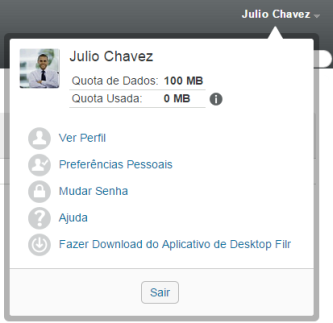 Link do Nome: Clique em seu nome vinculado no canto superior direito de qualquer página do Filr para ver as opções a seguir: