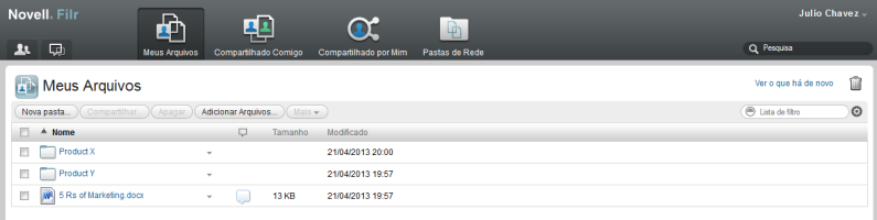 O Novell Filr fornece três formas convenientes de acessar arquivos: